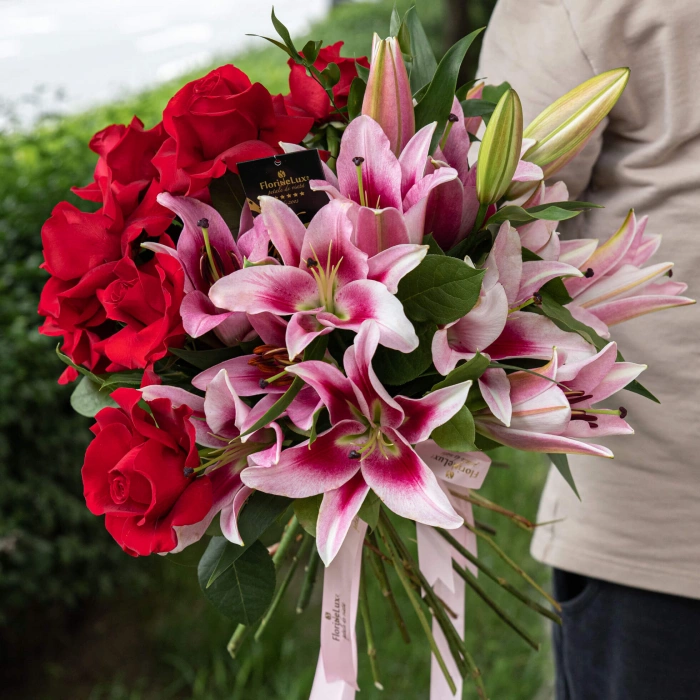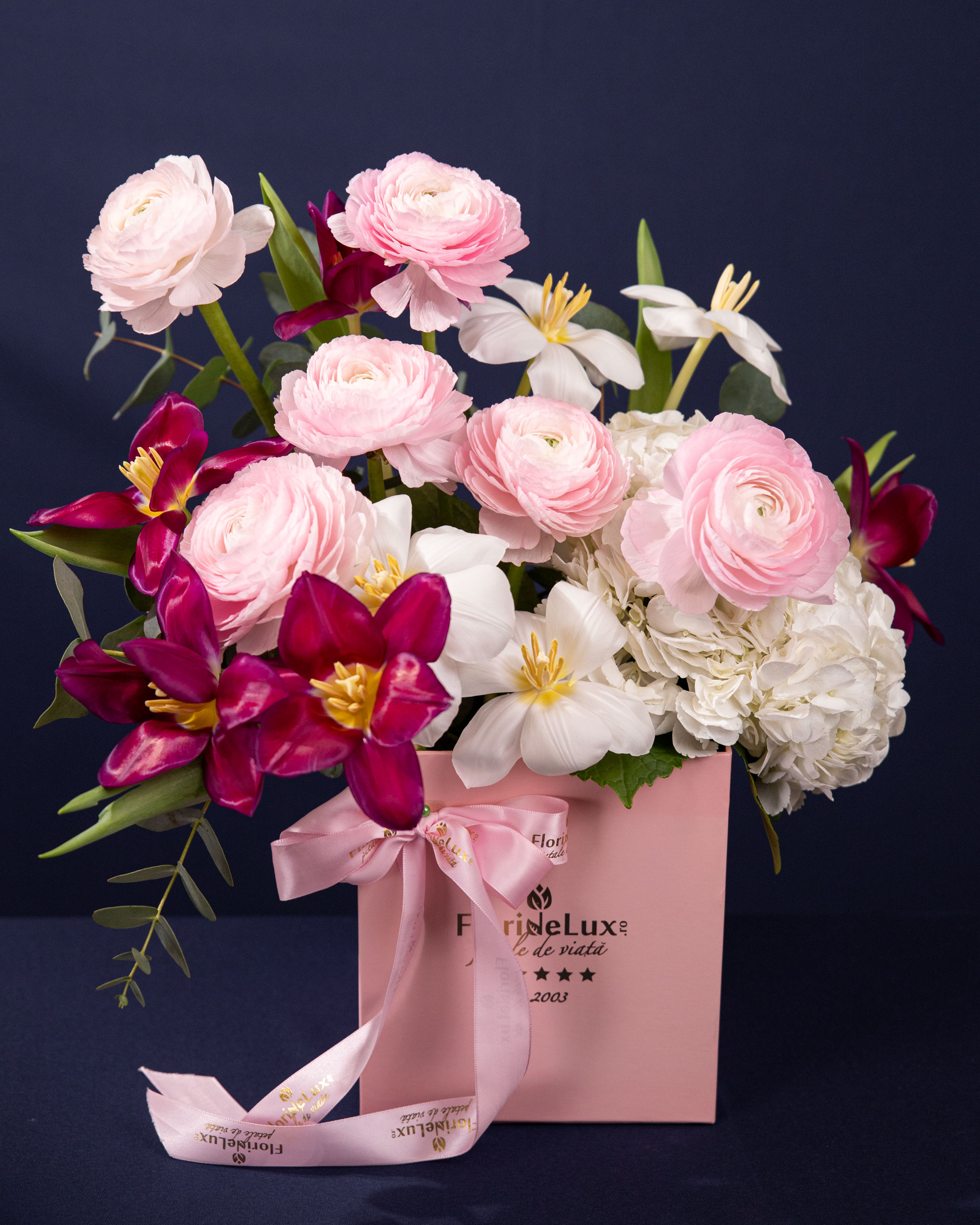 Pentru un efect mai premium, aranjamentele sunt o varianta practica si vizual puternica. Nu necesita vaze si sunt usor de oferit.